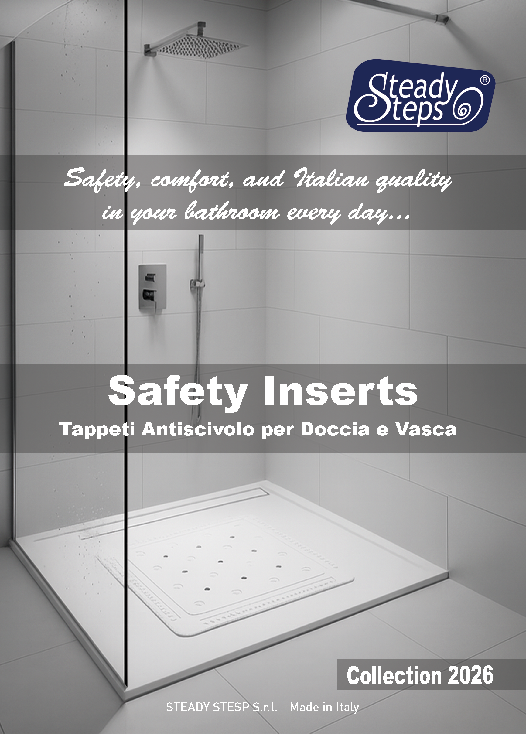 Scarica il nostro catalogo dedicato ai Tappeti Antiscivolo per Doccia e Vasca, per esplorare l'intera collezione di creazioni STEADY STEPS. Dalle ultime novità ai nostri classici intramontabili, troverai tutte le informazioni necessarie per apprezzare la cura e la dedizione che mettiamo in ogni singolo pezzo. Una risorsa indispensabile per i nostri clienti, sia attuali che futuri, che offre una visione completa e professionale del nostro lavoro.